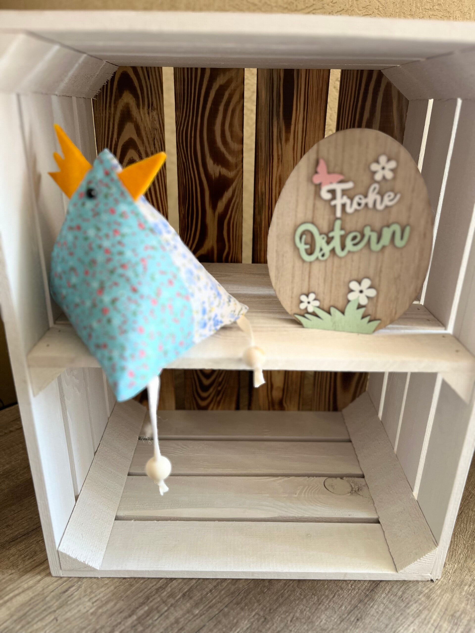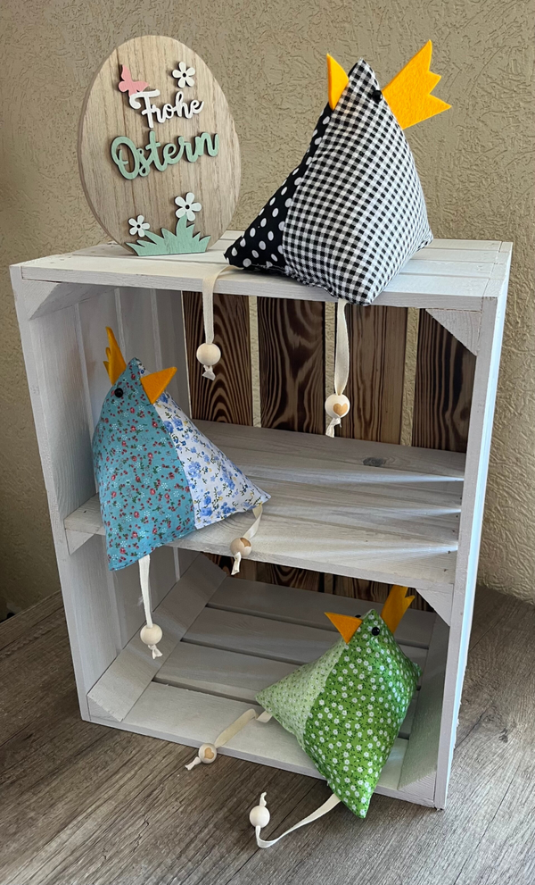 Perfekt als Osterdekoration, für den Frühling oder als süßer Hingucker auf dem Tisch, Regal oder Fensterbrett. Ob als Geschenk oder zum Selbstbehalten – dieses kleine, handgefertigte Huhn sorgt überall für eine gemütliche Atmosphäre.